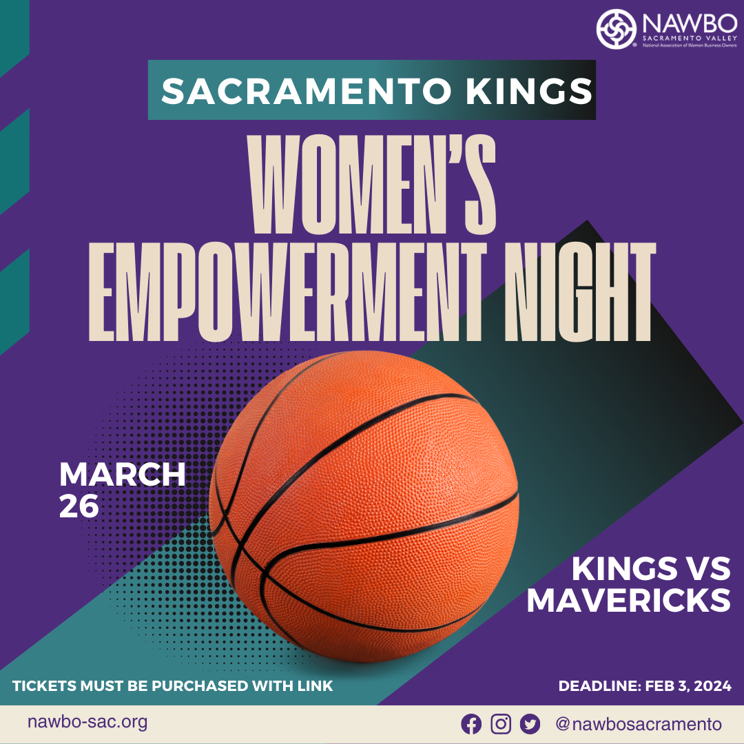 Bring family and friends and join NAWBO Sacramento on March 26, 2024 as we attend the Sacramento Kings vs. the Dallas Mavericks together as a community. Wear your purple proudly and show your support for women's empowerment at this unforgettable Sacramento Kings game. This is more than a game; it's a chance to connect with fellow NAWBO members, cheer on the Kings, and be part of an empowering evening.